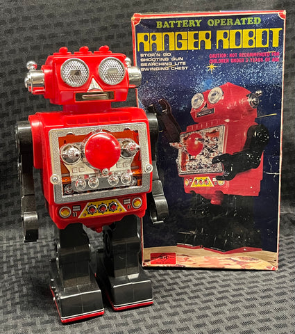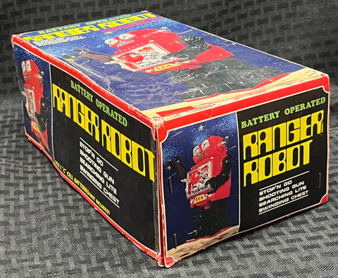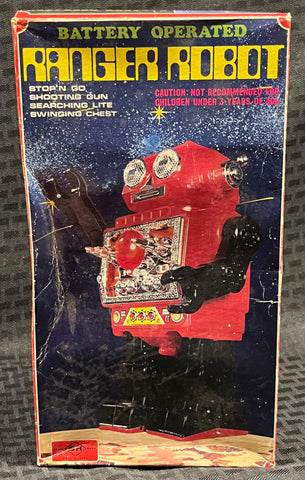 This cool battery operated ranger robot was made in Japan and a circa the 1970s – 1980s.