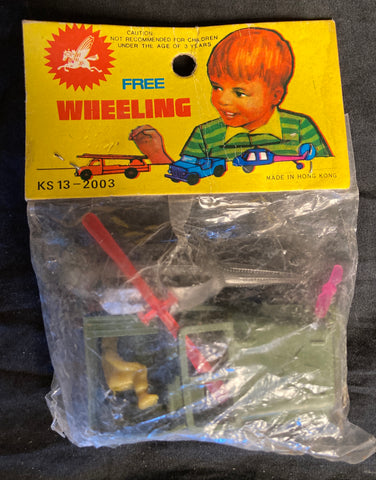 The set includes an Army jeep, helicopter, and driver - each vehicle is about 2 inches long.